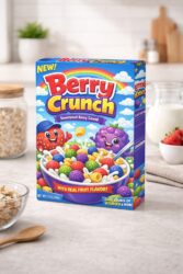 Cereal Box Mockup Standing on Modern Kitchen Counter