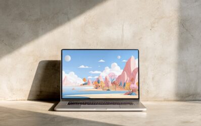Wallpaper Design on Laptop Mockup Placed on Floor