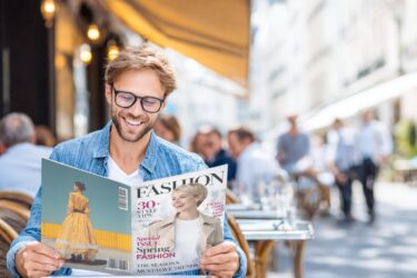 Male Reader with Fashion Magazine at an Fresco Café