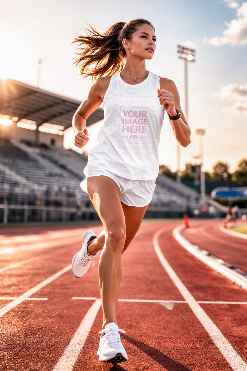 Athletic Tank Top Mockup on Model in Running Track