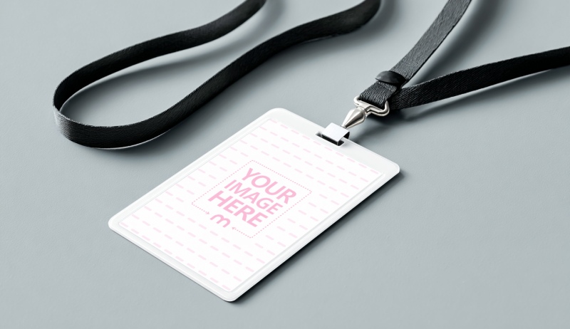 Card Badge Mockup Flat Lay with Lanyard for Identity Design