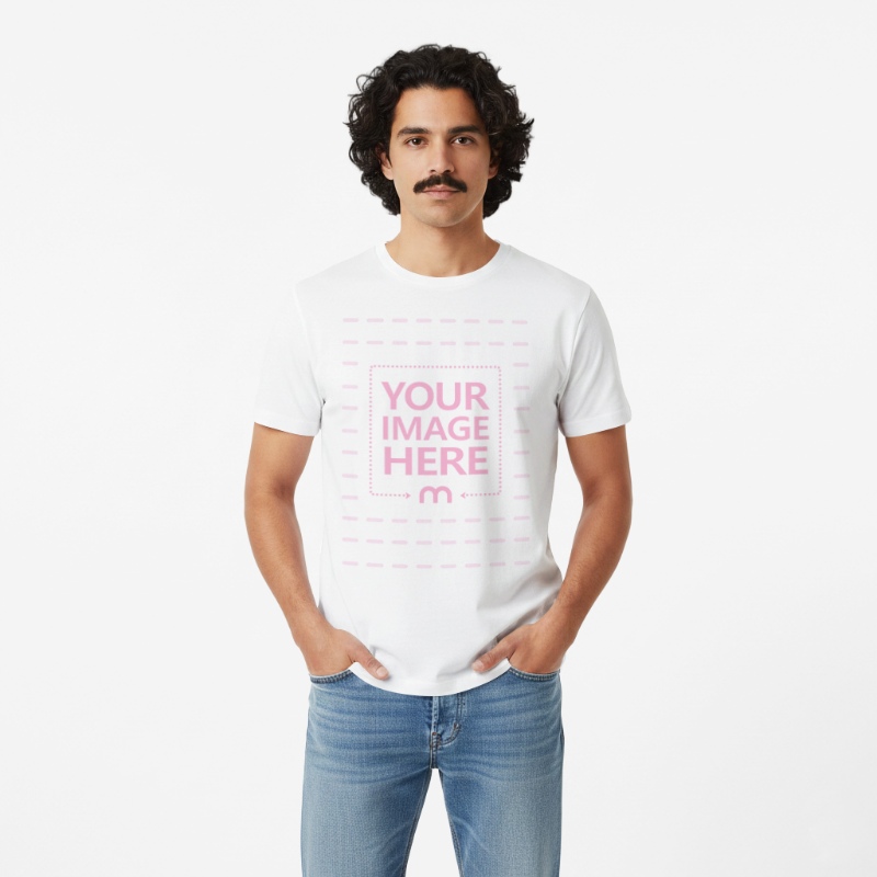 Classic T-Shirt Mockup on Male Model Studio Background preview image