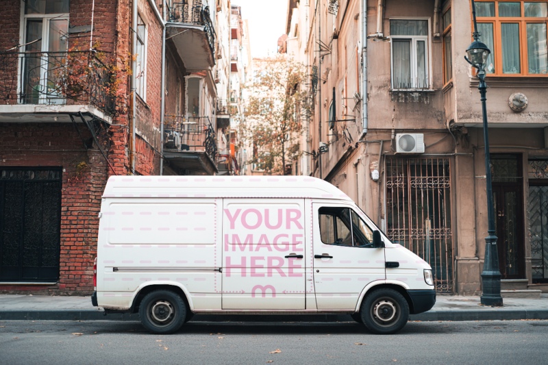 Delivery Van Mockup on Urban Street for Local Business Branding preview image