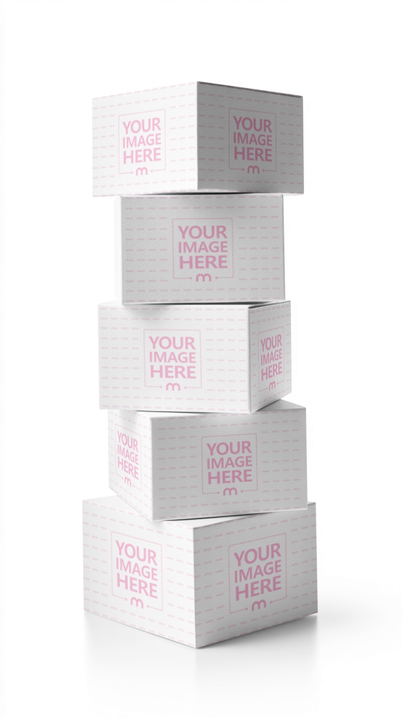 Five Stacked Boxes Mockup on White in Minimal Composition