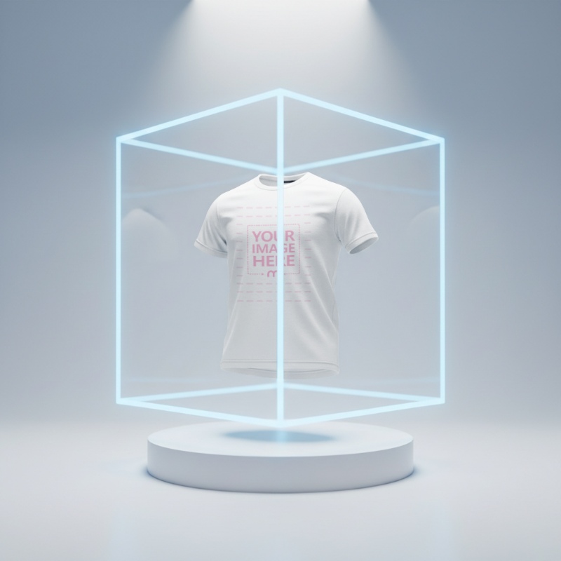Floating T-Shirt Mockup in Glass Cube for Futuristic Displays