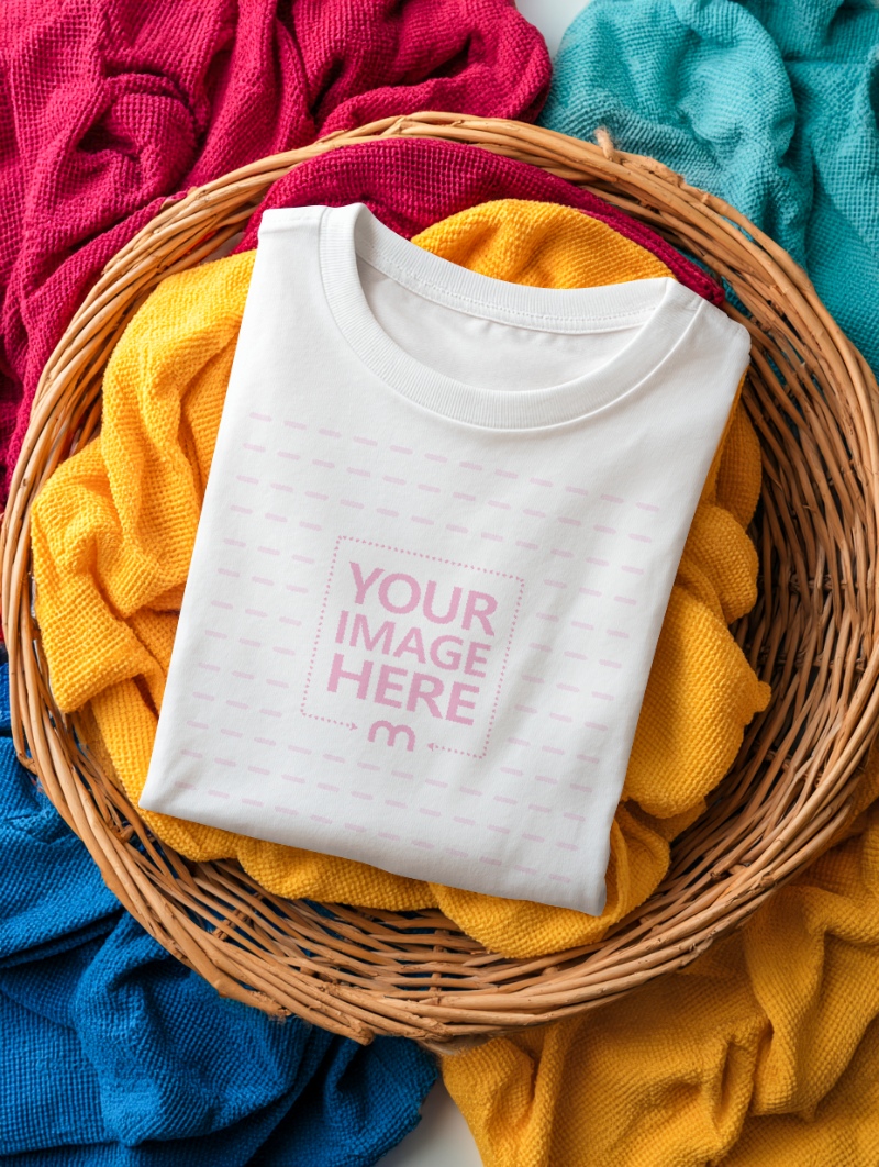 Folded T-Shirt Mockup in Wicker Basket for Apparel Branding