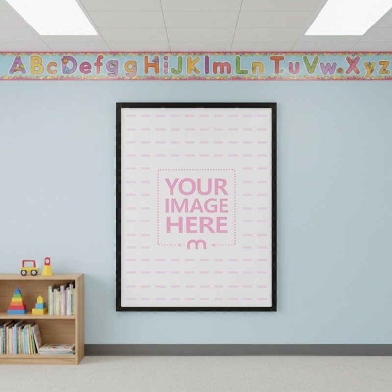 Frame Mockup in Preschool Room with Alphabet Border Wall