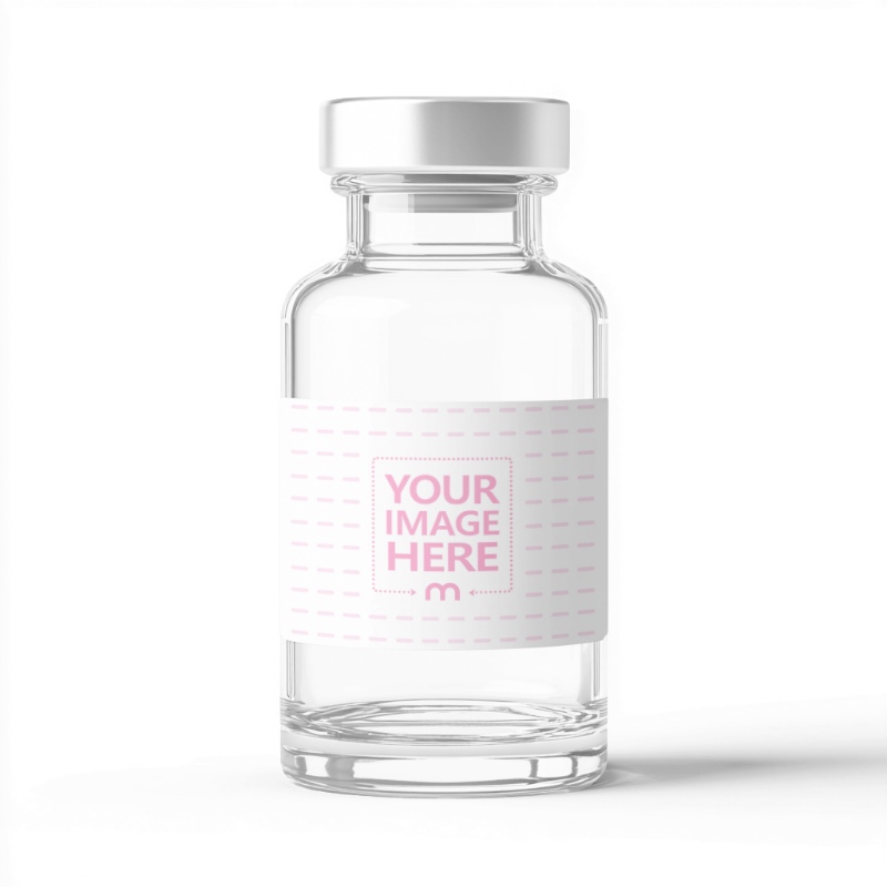 Glass Vial Mockup with Silver Cap and Blank Label
