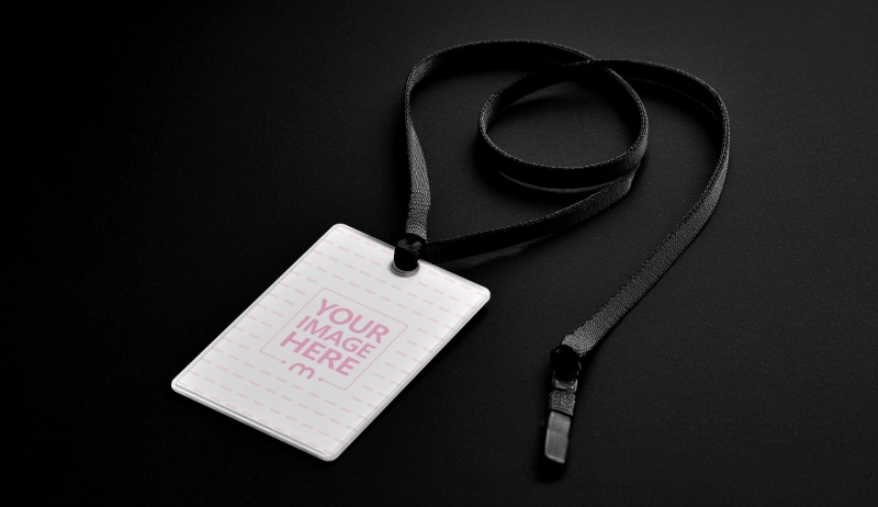 ID Badge Mockup with Black Lanyard for Corporate Identity