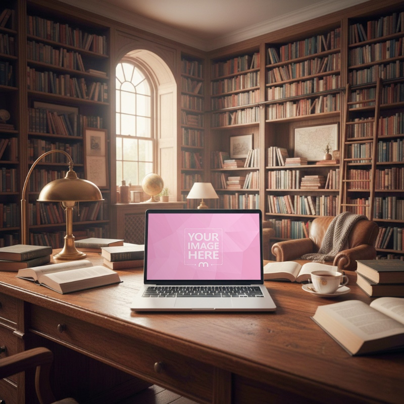 Tags:  psd mockup | mockup generator | laptop mockup | library scene | classic library | mockup template | digital design | workspace | study environment | technology | education | modern design | creative presentation | graphic design | branding | product showcase | professional display | interior design