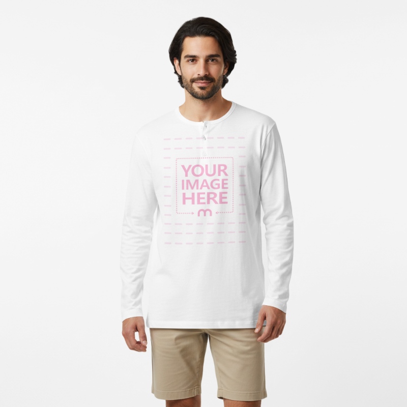 Long Sleeve Henley Mockup on Male Model for Casual Menswear