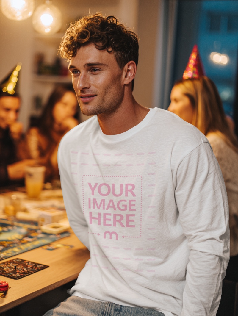 Long Sleeve Shirt Mockup with Man in Birthday Scene preview image