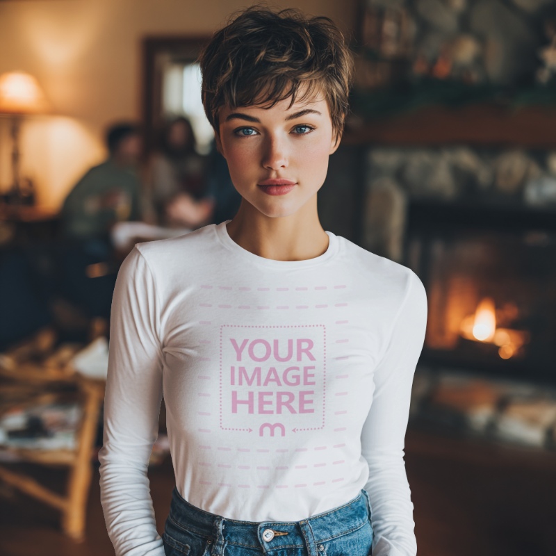Long Sleeve Shirt Mockup with Woman in Festive Room Setting
