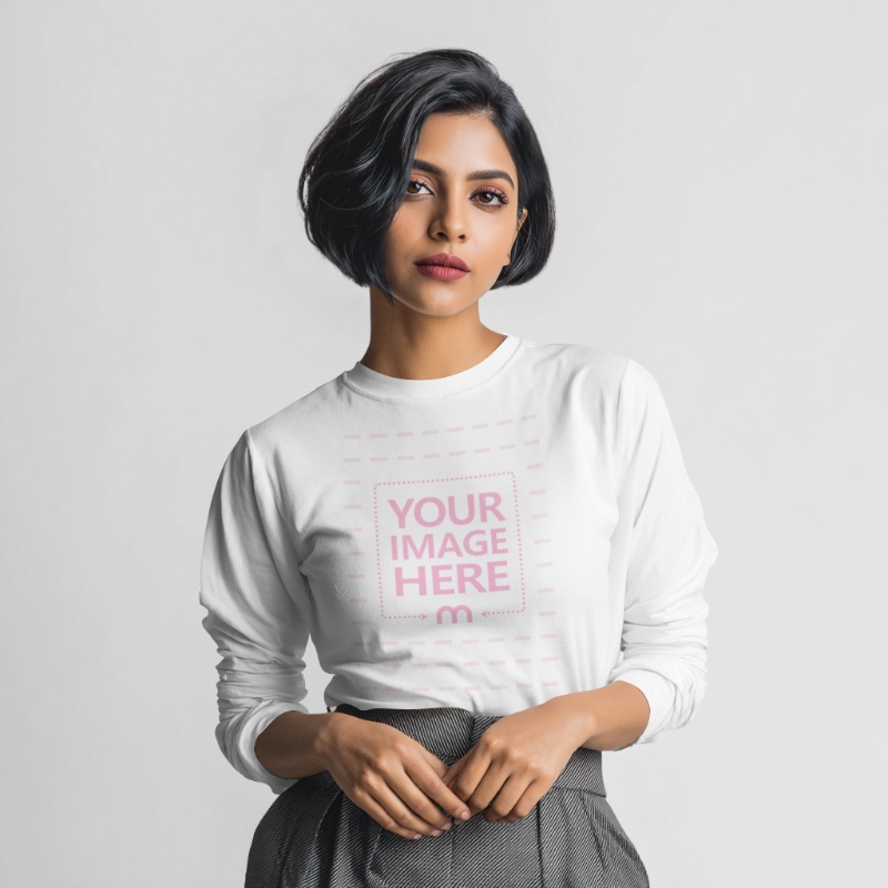 Tags:  long sleeve t-shirt mockup | female model | apparel mockup | clothing mockup | fashion mockup | graphic tee mockup | customizable t-shirt | women's fashion | casual wear | trendy apparel | print on demand | branding mockup | stylish top | clothing design | promotional wear | outfit inspiration | digital mockup | online store