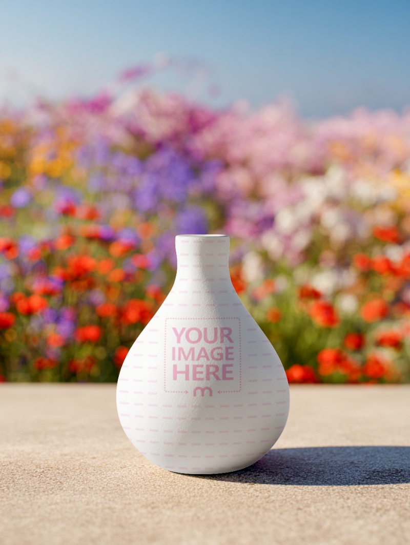 Minimalist Ceramic Vase Mockup in Garden Outdoor