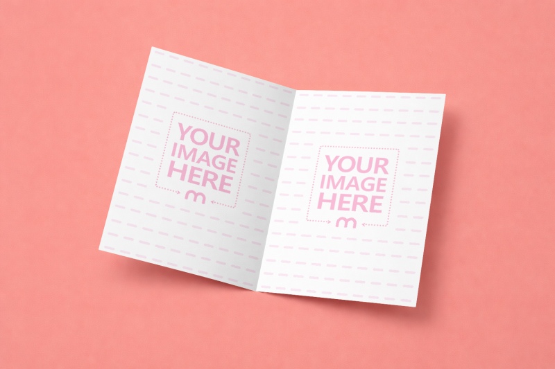 Open Bifold Card Mockup on Coral Background