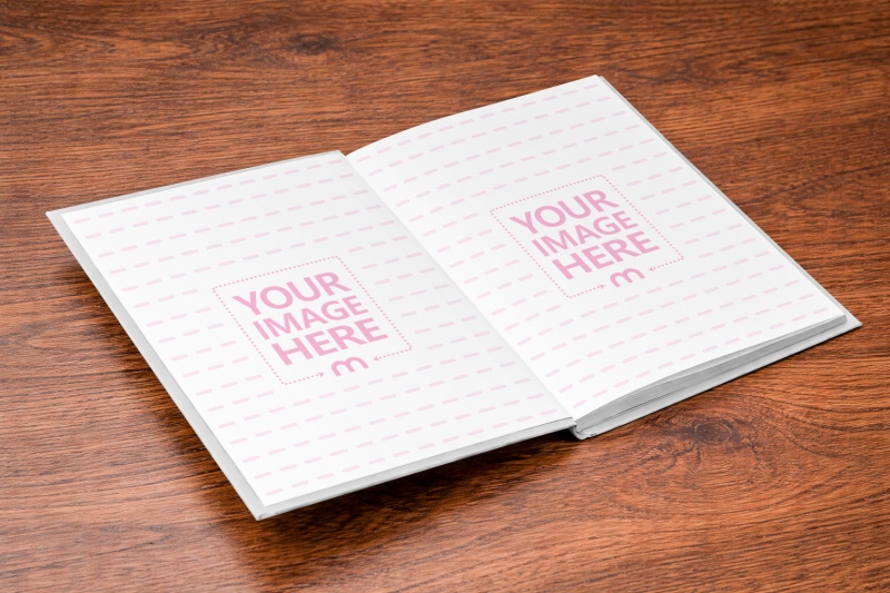 Open Book Mockup on Wooden Table for Editorials
