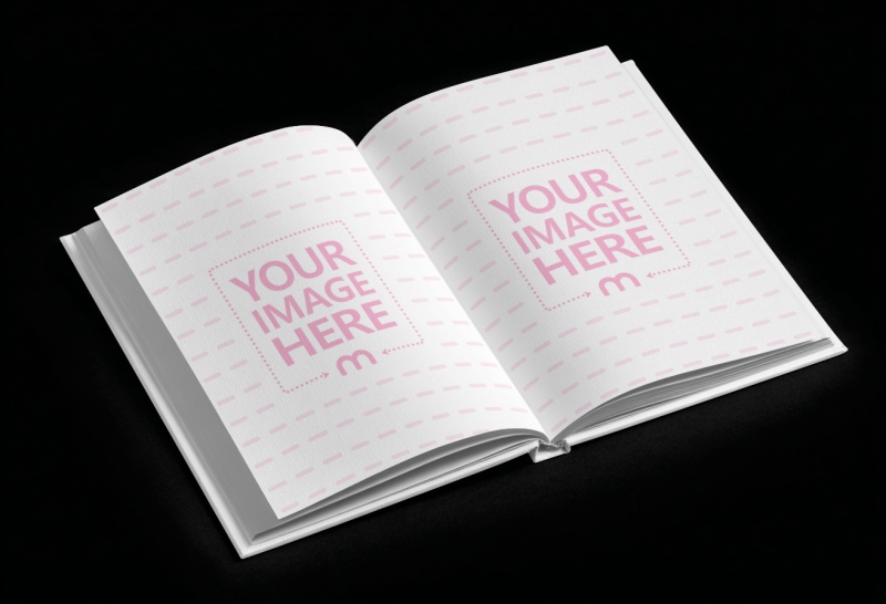 Open Book Mockup with Blank Pages on Dark Background preview image