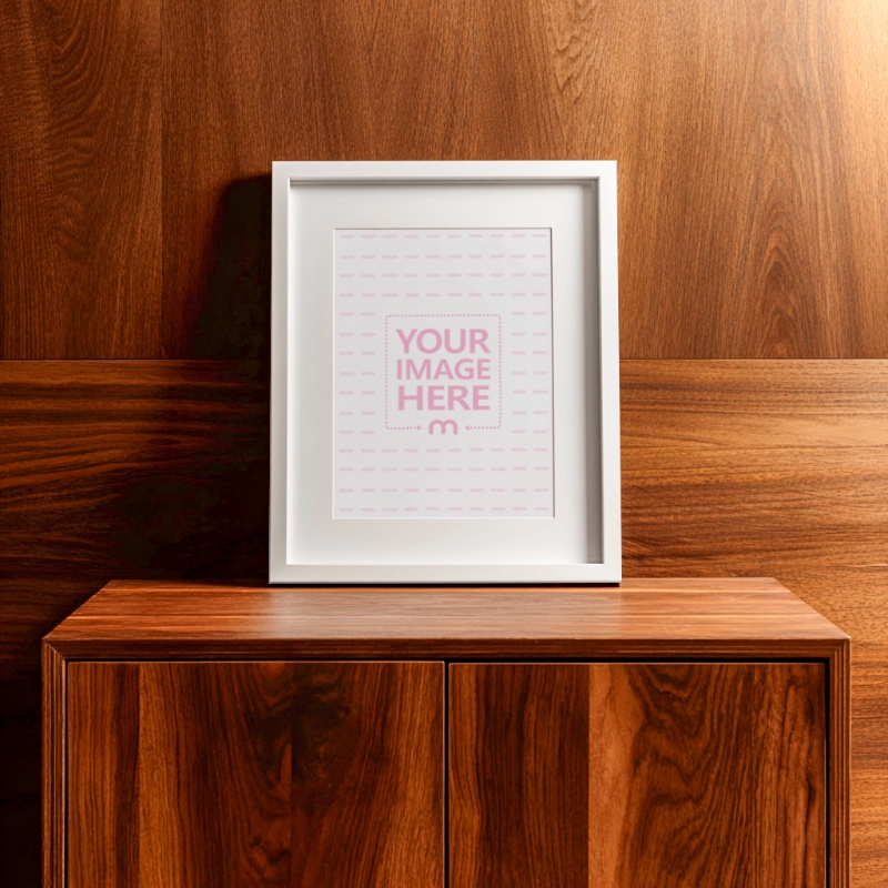 Picture Frame PSD Mockup on Cabinet for Home Decor