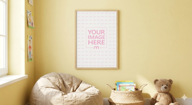 Poster Frame Mockup in Kids Room with Books