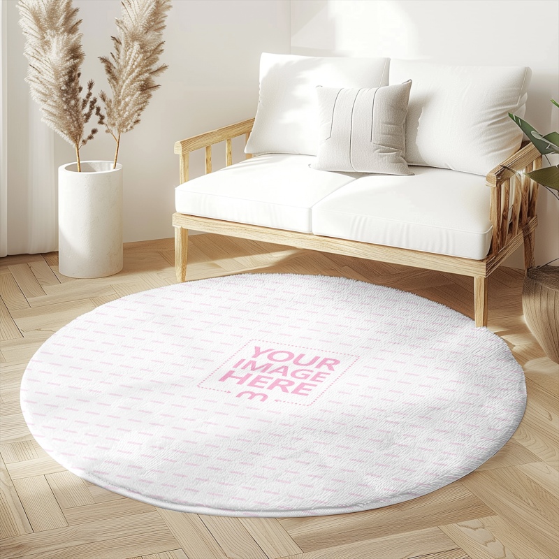 Tags:  psd mockup | mockup generator | round rug mockup | modern home setting | interior design | home decor | rug design | product photography | lifestyle mockup | round rug | home styling | contemporary decor | design showcase | visual presentation | cozy atmosphere | stylish interiors