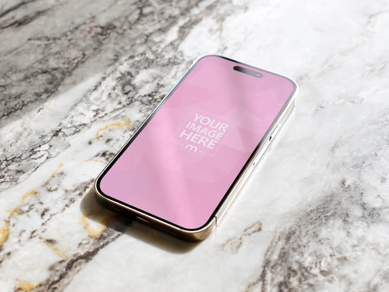 Smartphone Mockup on Marble Surface at Angled View