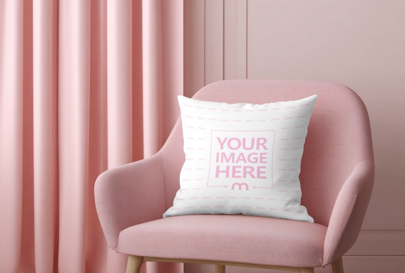 Square Pillow Mockup on Blush Pink Armchair