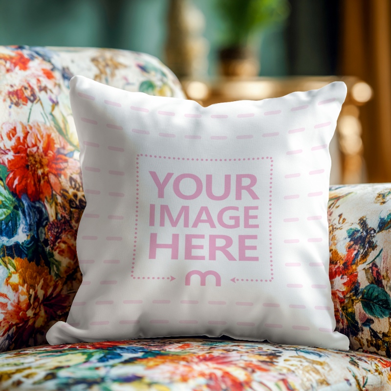 Square Pillow Mockup on Floral Armchair for Textile Showcases