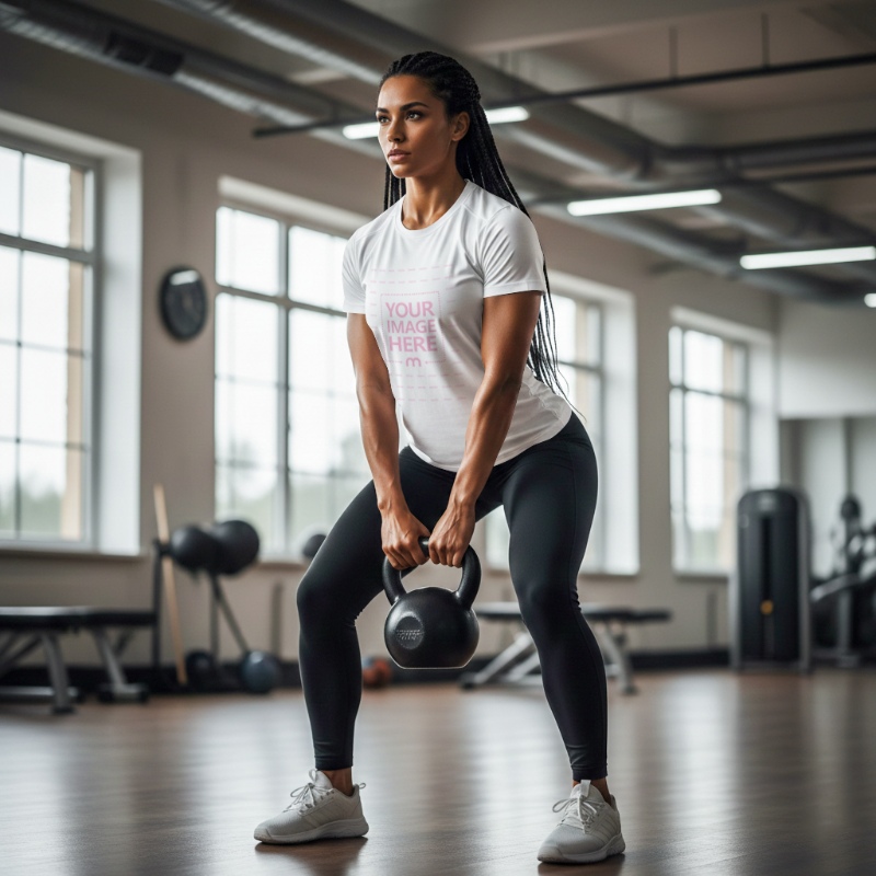 T-Shirt Mockup on Female Athlete in Gym preview image