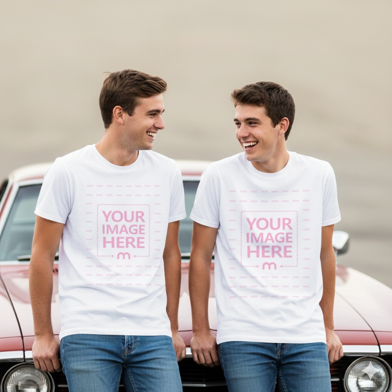 Tags:  psd mockup | mockup generator | t-shirt mockup | vintage car | twin brothers | apparel design | graphic design | mockup template | fashion photography | streetwear | branding | creative showcase | product presentation | lifestyle imagery | photography mockup | clothing display | artistic representation | visual merchandising