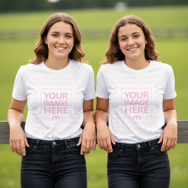 T-Shirt Mockup on Twin Sisters in Field for Youthful Apparels