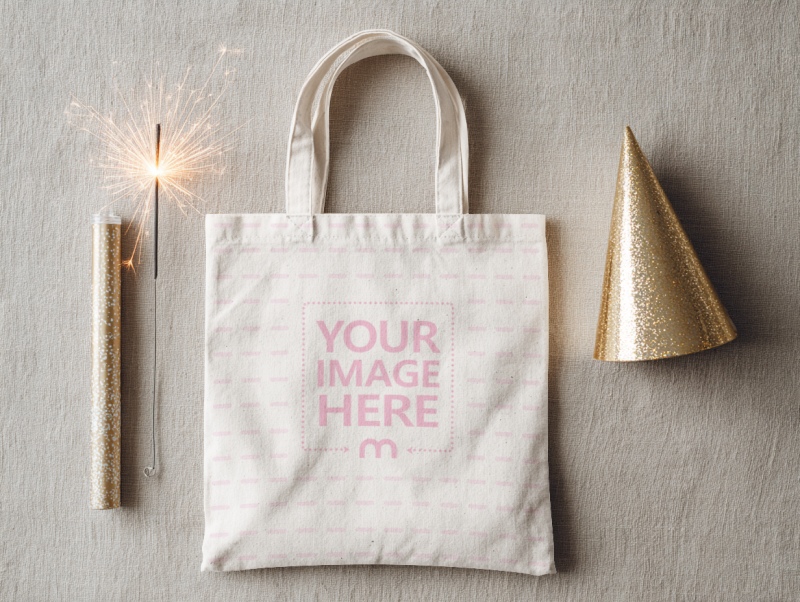 Tote Bag Mockup Top View with Small Firework Glow