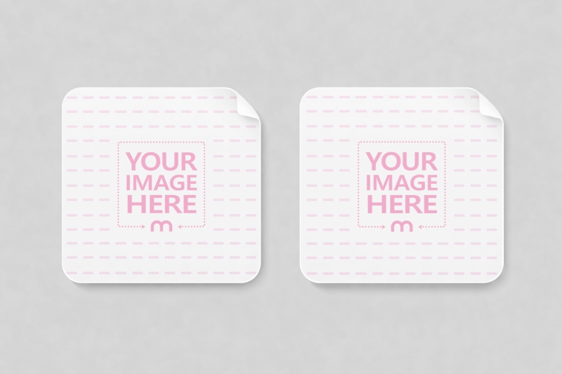 Two Square Stickers Mockup with Curled Corners Flat Lay