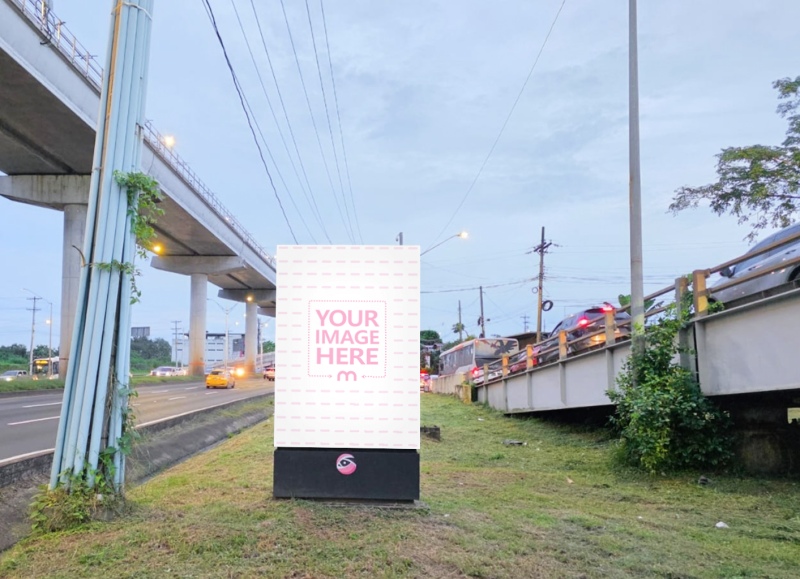Tags:  vertical billboard | outdoor mockup | grass | park | advertising | marketing | display | signage | promotional | customizable | realistic | high-quality | mockup template | urban environment | nature | visual communication | branding | eye-catching | public space | design showcase | landscape | creative advertising