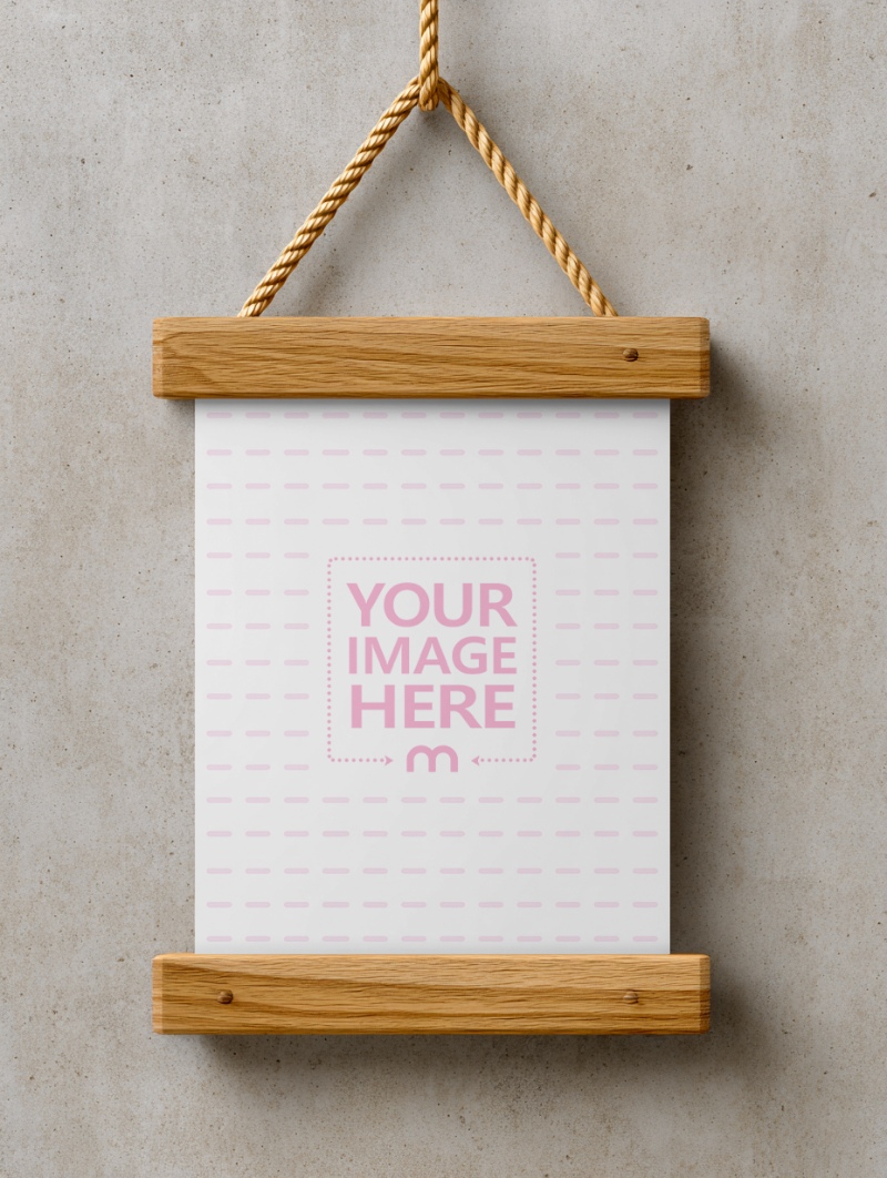 Wooden Poster Mockup Hanging with Rope Frame